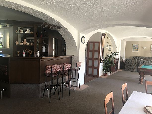 Dvoulůžkový apartmán s manželskou postelí. Nachází se v podkroví s výhledem do zahrady. Má vlastní koupelnu s WC a sprchovým koutem. V pokoji je křeslo, lednice, televize se satelitními programy a WIFI zdarma. Pro horké dny je na pokoji přenosná klimatizace. Dále jsou k dispozici velké společné prostory v přízemí s posezením, malou kychyňkou a terasou s venkovním grilem. K dispozici je kávovar, minibar s pitím (za poplatek) a veškeré potřebné nádobí. K ukrácení chvíle je možno využít velký kulečník a šipky.