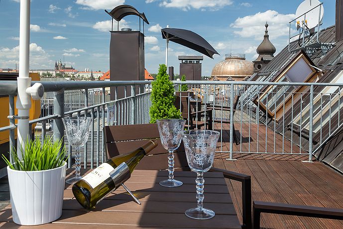Pěkný apartmán na Václavském náměstí v historické budově, nacházející se přímo na Václavském náměstí. Ideální pro 5 lidí se 2 oddělenými pokoji a plně vybavenou kuchyní. Možnost zajištění parkování na Václavském náměstí. Internet WiFi zdarma, možnost zapůjčení notebooku a mobilního telefonu. Nabízíme kontinentální snídaně za pouhých 6 EUR / osobu. V blízkosti je nespočetné množství restaurací, barů a obchodů.