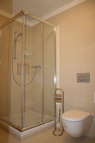 Einziges Manko der Wohnung war ein offensichtlich noch nicht ganz behobener Feuchtigkeitsschaden im Bad. Ein Resopalquadrat aus der Decke war entfernt worden, wohl um den Schaden zu beheben. Um diese Stelle herum war etwas Schimmel und die Tapete braun verfärbt. Am zweiten Tag (es war in Prag sehr heiß) machte sich ein unangenehmer modrieger Geruch in der Wohnung bemerkbar. Dessen Quelle konnten wir nicht ergründen.